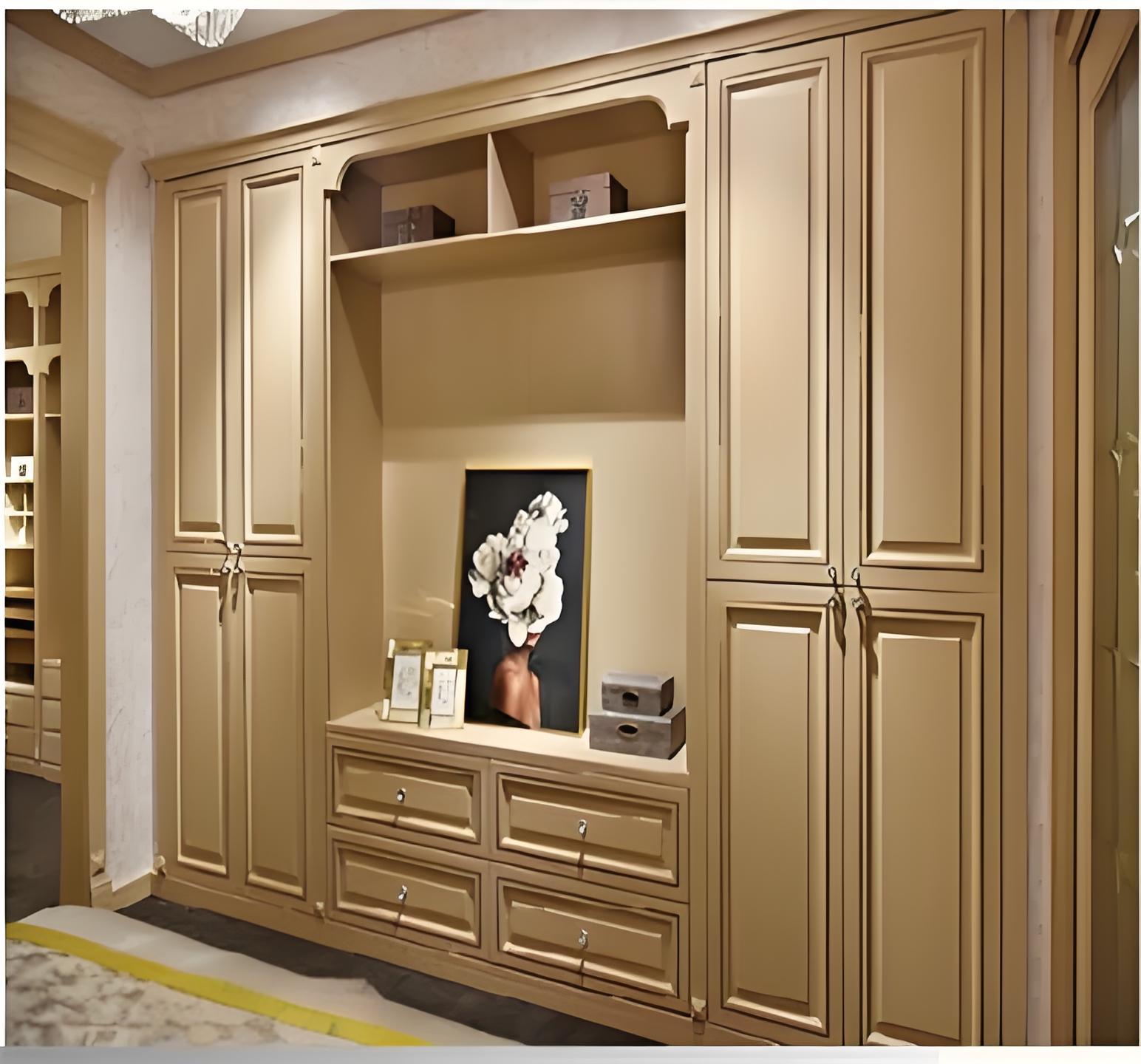 客厅/卧室:ENF级颗粒板柜体+PET肤感门板。