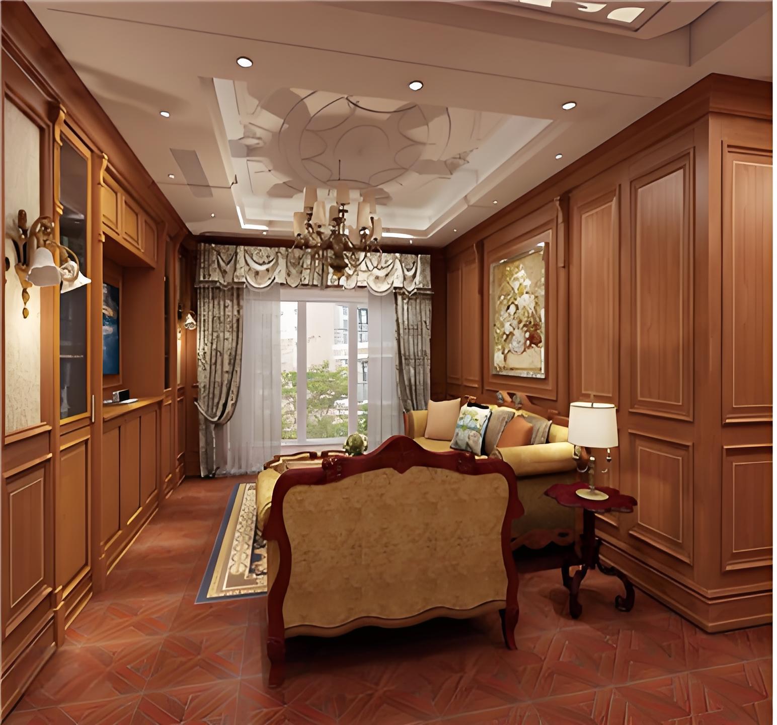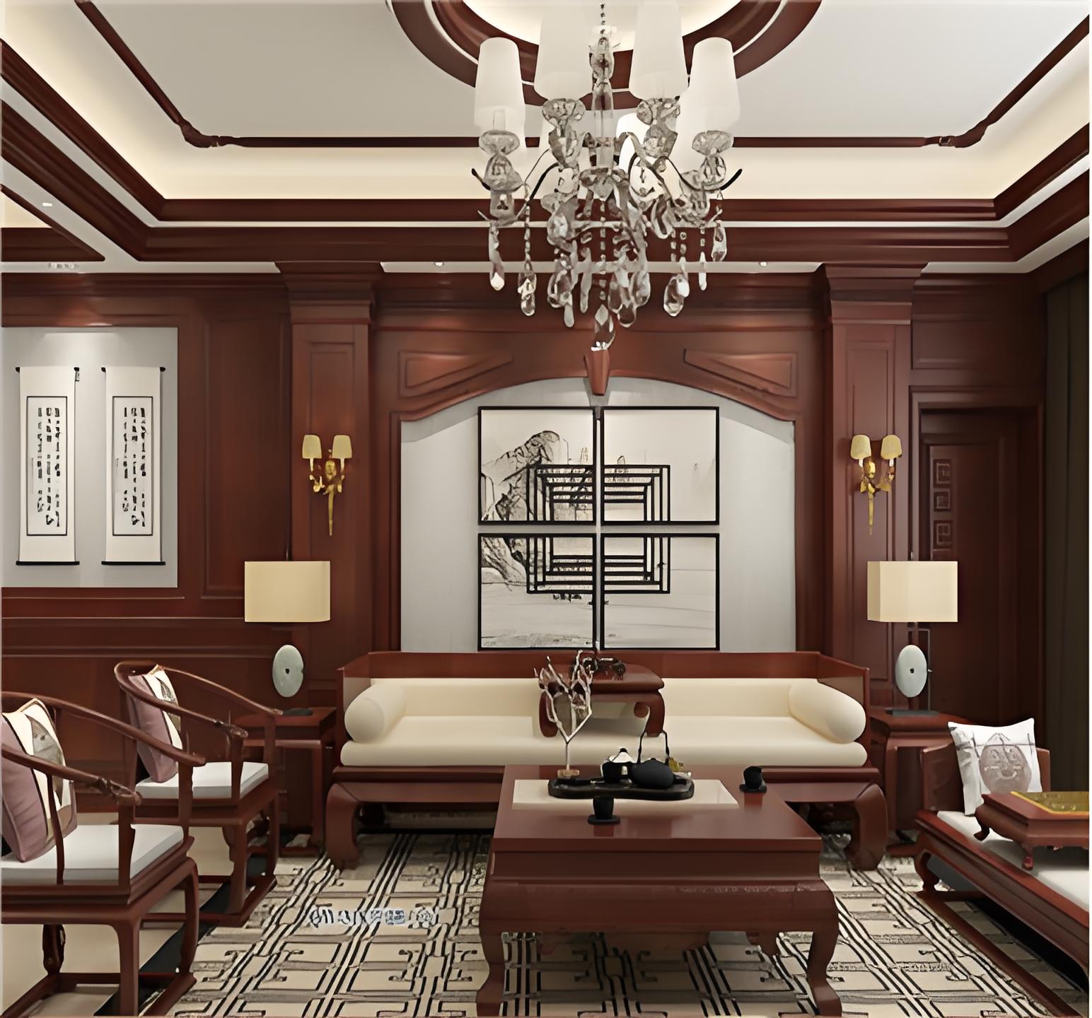 新中式:榫卯框架+红木雕花,搭配铜制如意门环。
